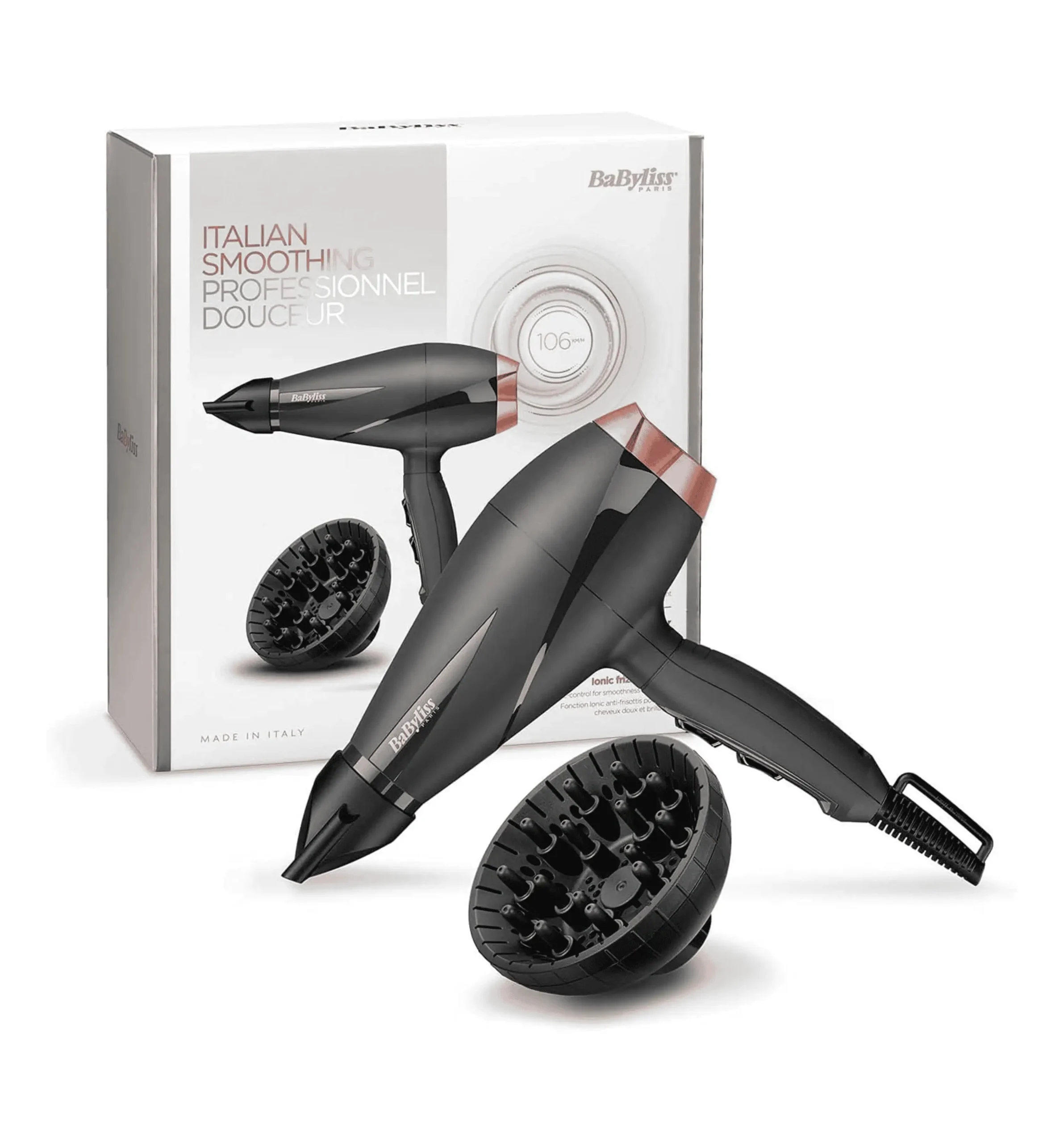 With ionic frizz control technology, this hair dryer helps reduce static and frizz while enhancing smoothness and shine. It comes with a concentrator nozzle (Smooth Pro 1) for precise styling and a curl enhancing diffuser for natural volume and defined curls.