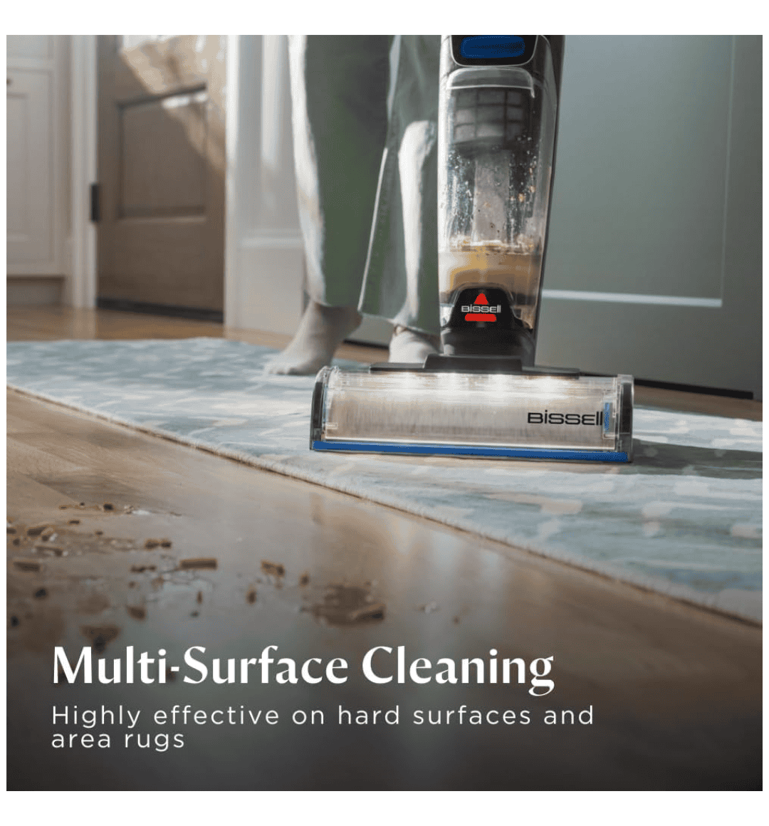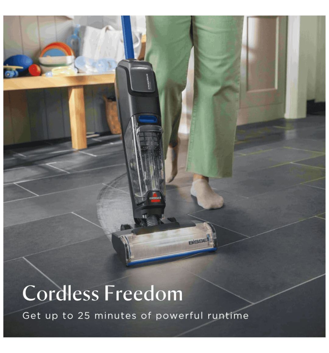 With tangle-free technology, it prevents hair wraps and clogs, while the automatic self-cleaning system flushes out dirt, hair, and debris from the brush roll after every use. Lightweight and cordless, the Crosswave Omnifind ensures maximum maneuverability and convenience across your home.