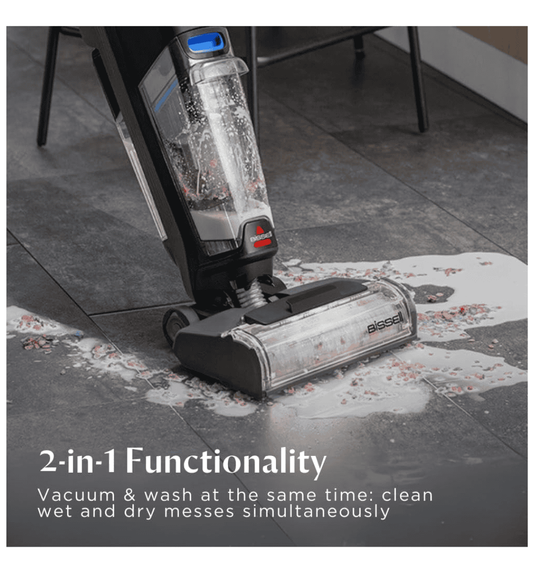 2-in-1 Functionality: Vacuum & mop simultaneously or use vacuum-only mode for dry debris.