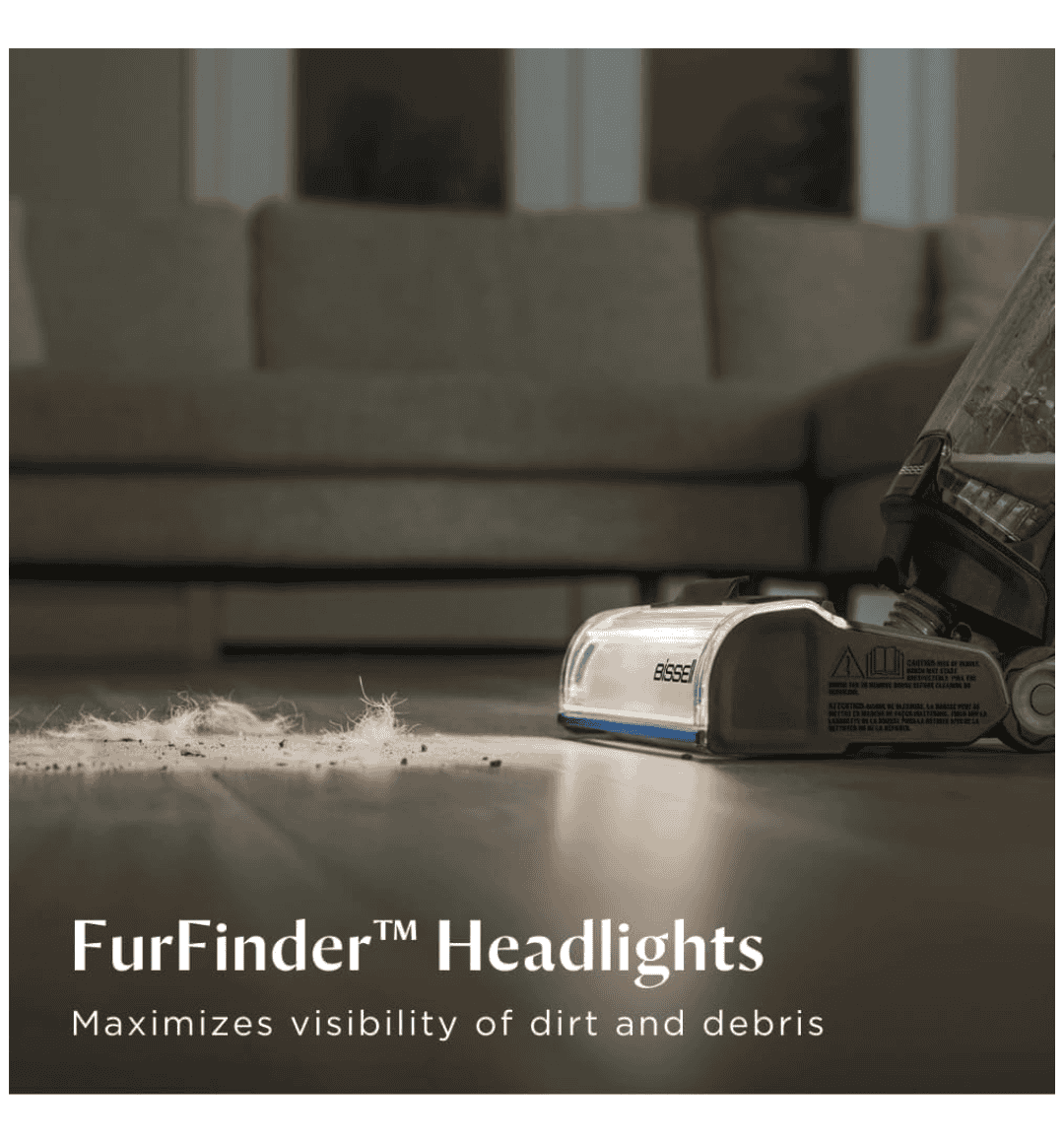 FurFinder Headlights: Detects 9× more pet hair and hidden dirt for thorough cleaning.