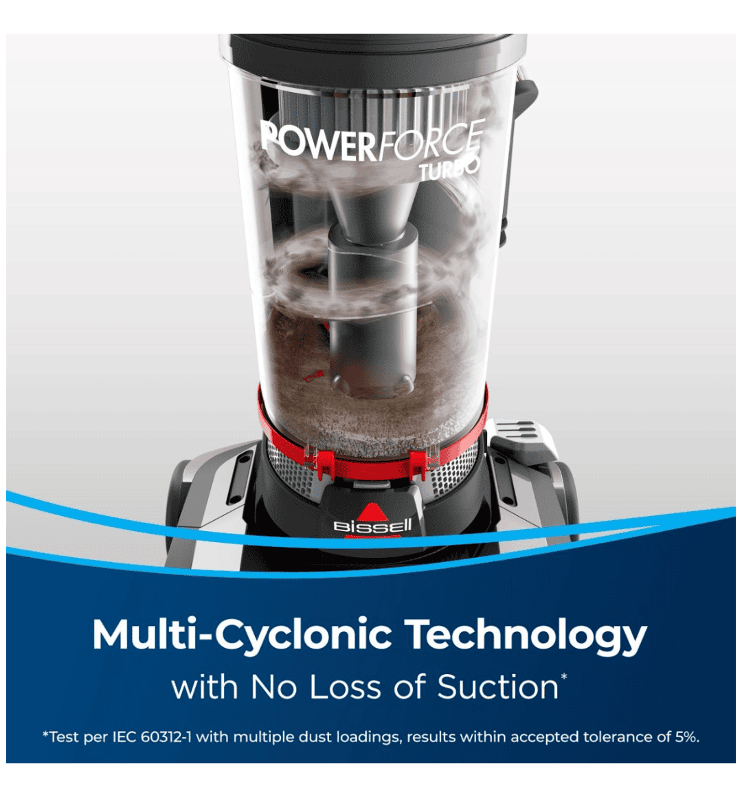 The BISSELL PowerForce® Helix™ Turbo 2110E is engineered for maximum suction, effortless cleaning, and long-lasting performance. Its exclusive Helix™ Performance Dirt Separation System captures dirt, debris, and pet hair efficiently, extending filter life while keeping your home cleaner for longer.
