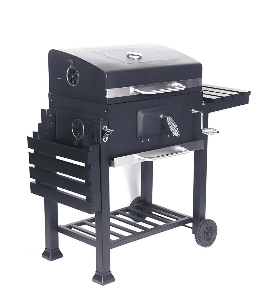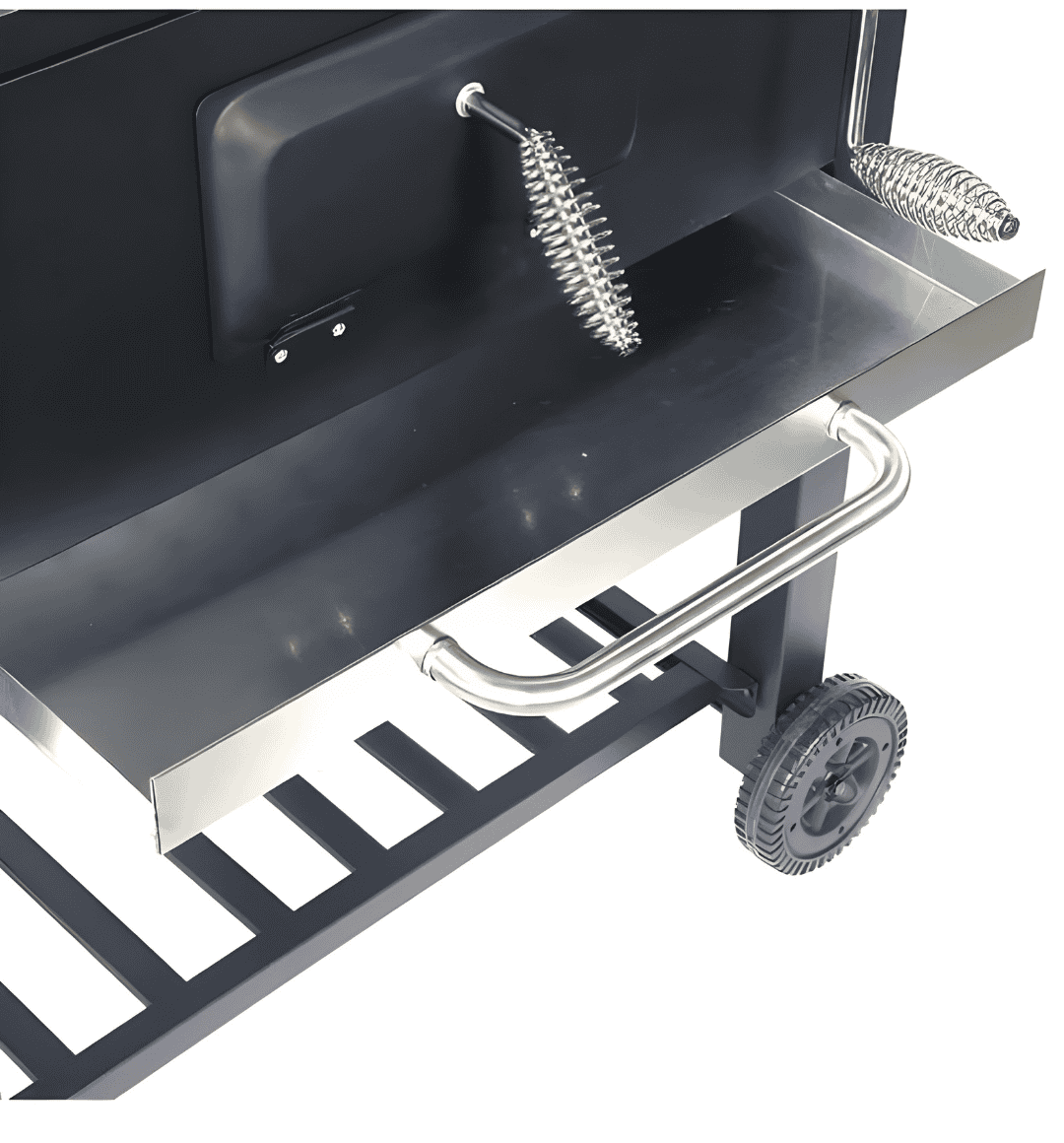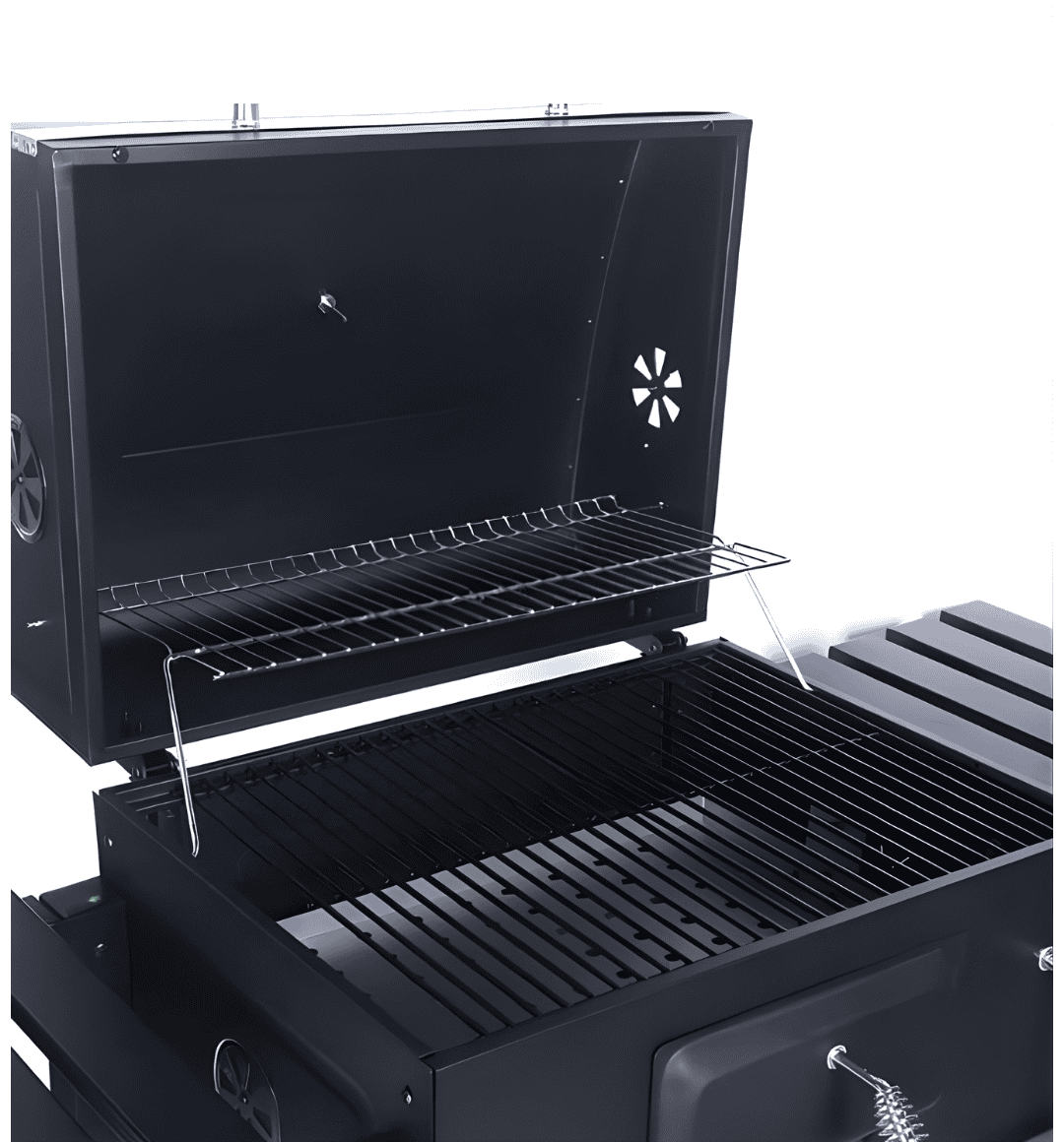 The Campomatic Charcoal Barbecue BBQ620 is designed for grill lovers who demand performance, durability, and convenience. Built with robust carbon steel and coated with high heat-resistant paint, it ensures long-lasting outdoor cooking performance. Featuring a 60cm cast iron cooking grid, adjustable charcoal pan height, and a secure lid with temperature gauge, it offers excellent heat control for perfect grilling results. With foldable side shelves and heavy-duty wheels with a lock function, this charcoal BBQ combines style, functionality, and mobility — ideal for gardens, terraces, and outdoor gatherings.