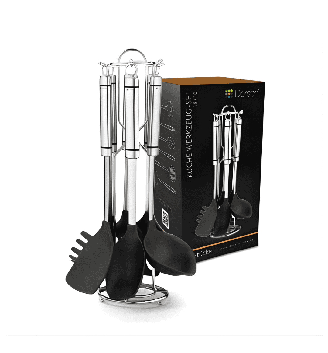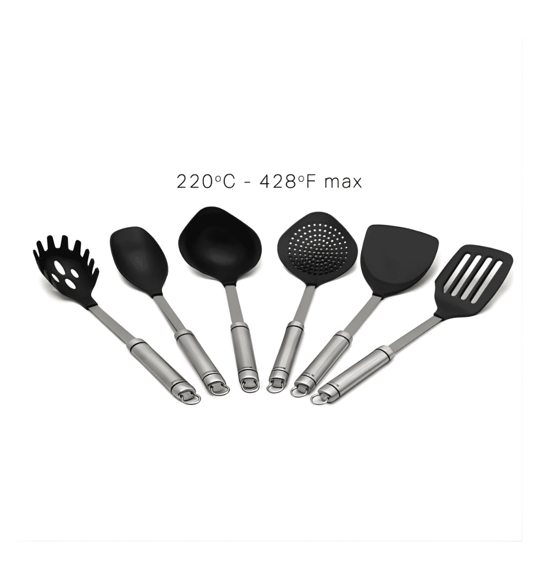 The Dorsch 7 Pcs Utensils Set DH-05730 is a perfect blend of practicality and elegance for every modern kitchen. Designed for everyday cooking, this set includes all the essential tools you need — from stirring and serving to straining and scooping. Each utensil features a durable stainless steel 304 handle with nylon heads that are gentle on cookware, making them ideal for non-stick surfaces.