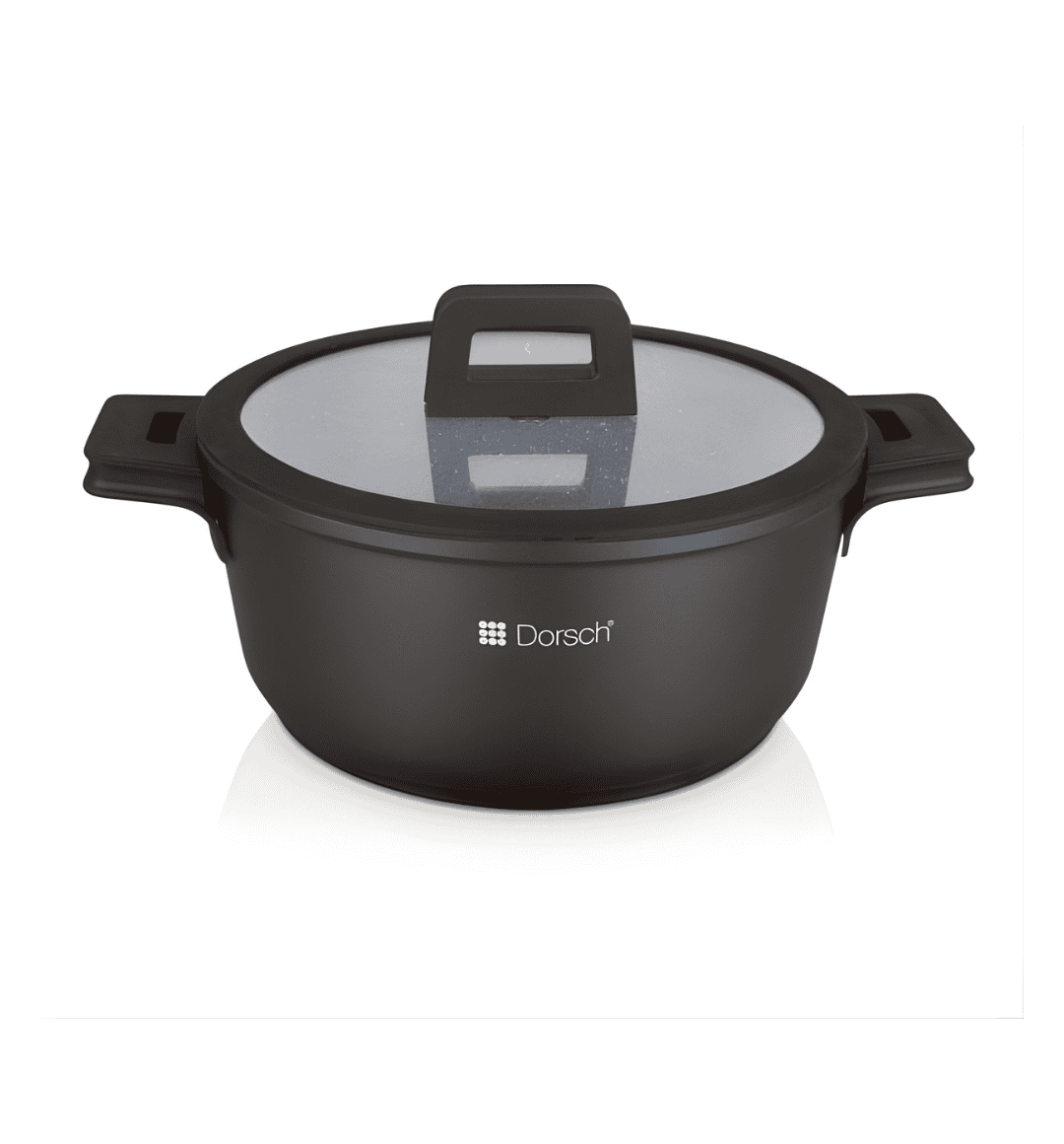 The Dorsch Ceramic Cookware Set DH-05577/SR is a premium 5-piece set designed for efficient, healthy, and stylish cooking. Made with Proglider non-stick marble ceramic coating and die-cast aluminum, this cookware ensures even heat distribution and easy food release. Each piece comes with flat lids featuring silicone rims for secure cooking and safe handling. The set includes three casseroles (28 cm, 24 cm, 20 cm), a saucepan (18 cm), and a deep fry pan (28 cm) — ideal for preparing a wide range of dishes with ease.