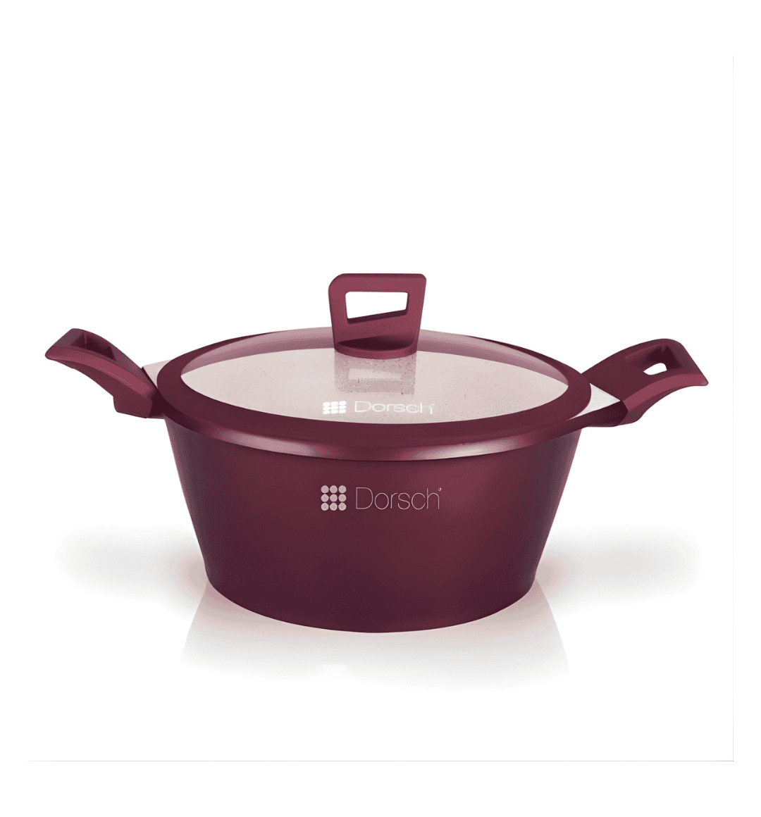 The Dorsch Premium Casserole Set DH-05492 combines durability, health-focused materials, and exceptional cooking performance. Made with 100% natural ceramic non-stick coating, this set is free from harmful chemicals such as PTFE and PFOA, ensuring healthier meals for your family. The die-cast aluminum body promotes optimal heat distribution for energy-efficient cooking, while the glass lids allow convenient monitoring without heat loss. Suitable for all heat sources including induction, this set brings professional performance to everyday cooking.