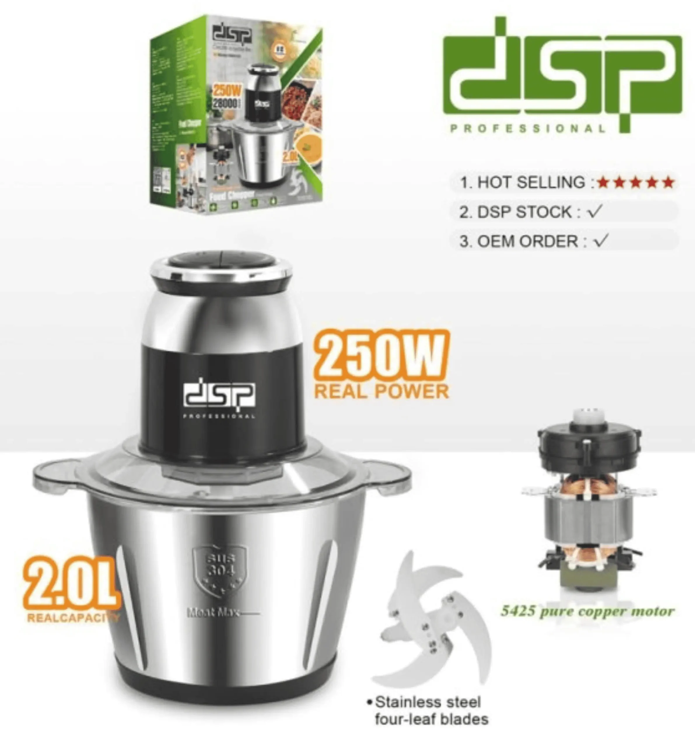 The DSP KM4103 Electric Kitchen Chopper is a compact yet powerful kitchen tool designed for fast, efficient food preparation. Powered by a 250W high-speed motor, it easily chops vegetables, meat, herbs, and nuts with precision. The 2.0L 304 stainless steel bowl provides a hygienic and durable mixing space, ideal for everyday cooking needs.