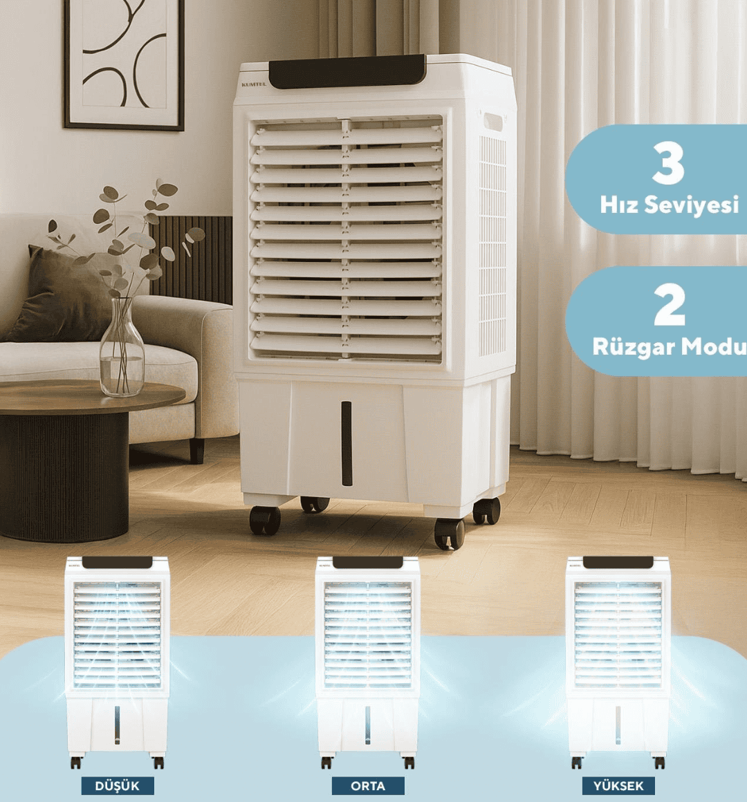 The Kumtel HAC-03 Desert Ice & Water Cooler delivers powerful and refreshing air circulation, making it ideal for homes, offices, and industrial areas. Designed with advanced ice crystal cooling technology and a large-capacity water tank, it provides efficient cooling performance while staying energy-friendly. With multiple modes, quiet operation, and smart functions like remote control and a 12-hour timer, it offers a practical and cost-effective cooling solution during hot summer days. Its compact size and wheeled design allow easy portability to any space.