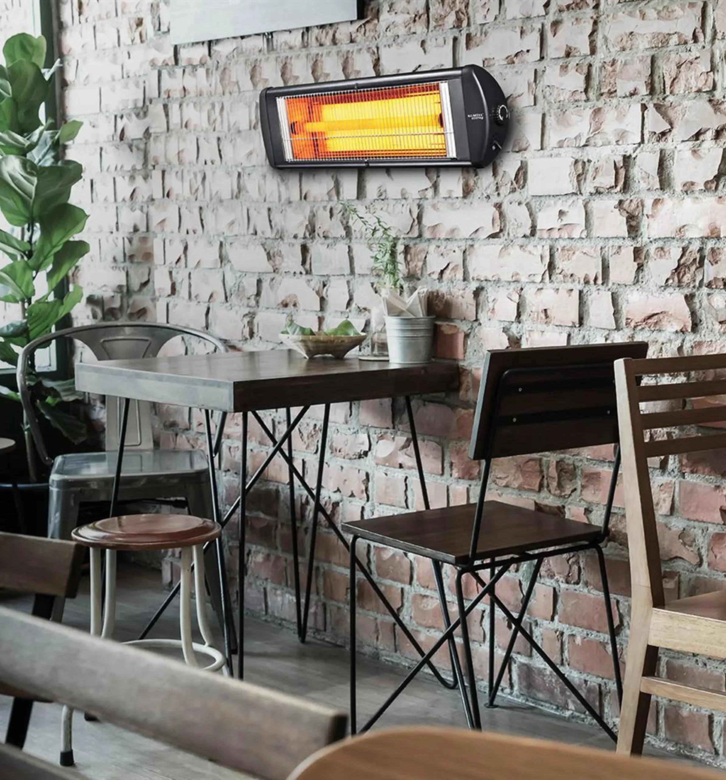 Heats indoor areas up to 28 m² and outdoor areas up to 18 m²