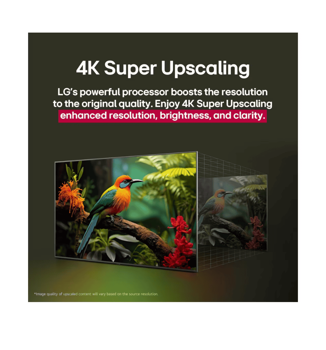 Built for both entertainment and gaming, this LG TV includes Game Optimizer, HGIG Mode, ALLM, and VRR up to 60Hz, ensuring smooth and responsive gameplay.