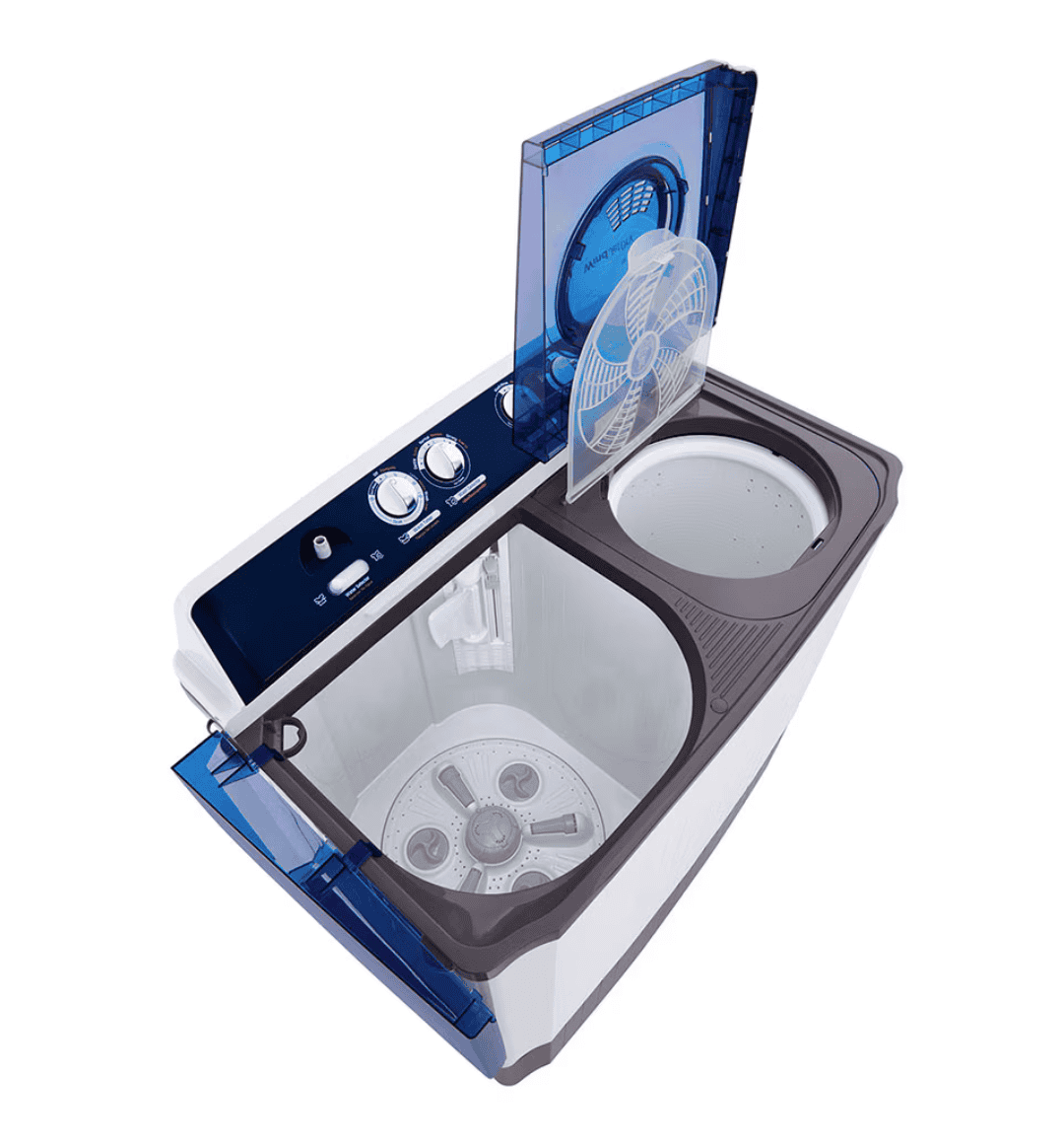 Additional features like Wind Jet Dry speed up drying, and Rat Away technology safeguards your machine from pests. With 3 versatile wash programs—Gentle, Normal, and Strong—this washing machine caters to all types of laundry needs. Its modern design combines a blue-white body with a midnight blue control panel for a stylish addition to your laundry area.