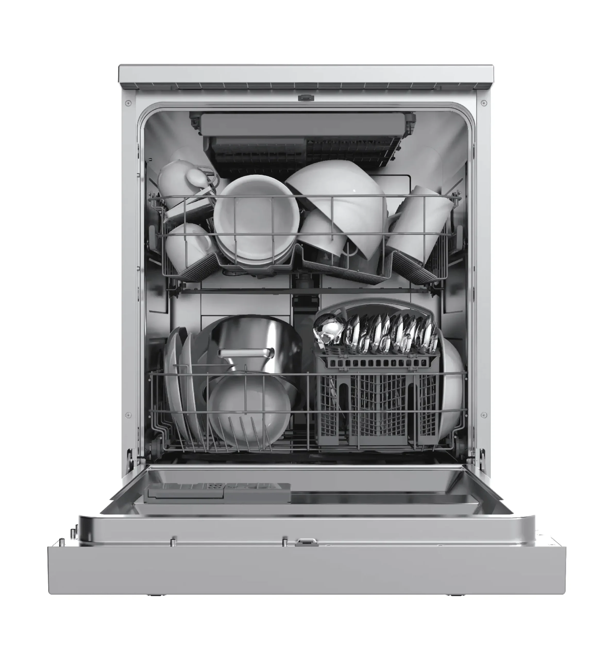 Upgrade your kitchen efficiency with the Midea Dishwasher Freestanding 14 Place Setting WQP14-5201CS-GCC, a sleek silver dishwasher designed to adapt to your lifestyle. Whether you need a freestanding unit or a built-under solution, this machine offers the ultimate flexibility. Boasting a spacious 14-place setting capacity and an intelligent Auto Open Door feature, it ensures your dishes come out perfectly dry and ready to use.