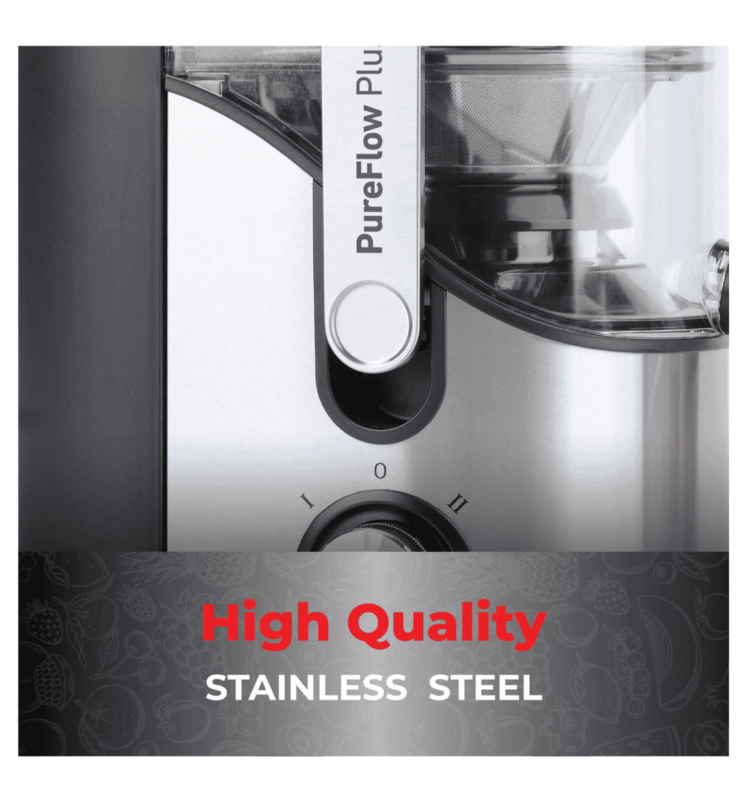 Featuring 2 speed controls, you can easily adjust the juicing intensity to suit both soft and hard ingredients. The stainless steel filter ensures maximum juice yield and purity, while the durable stainless steel housing adds strength and a modern look to your kitchen.