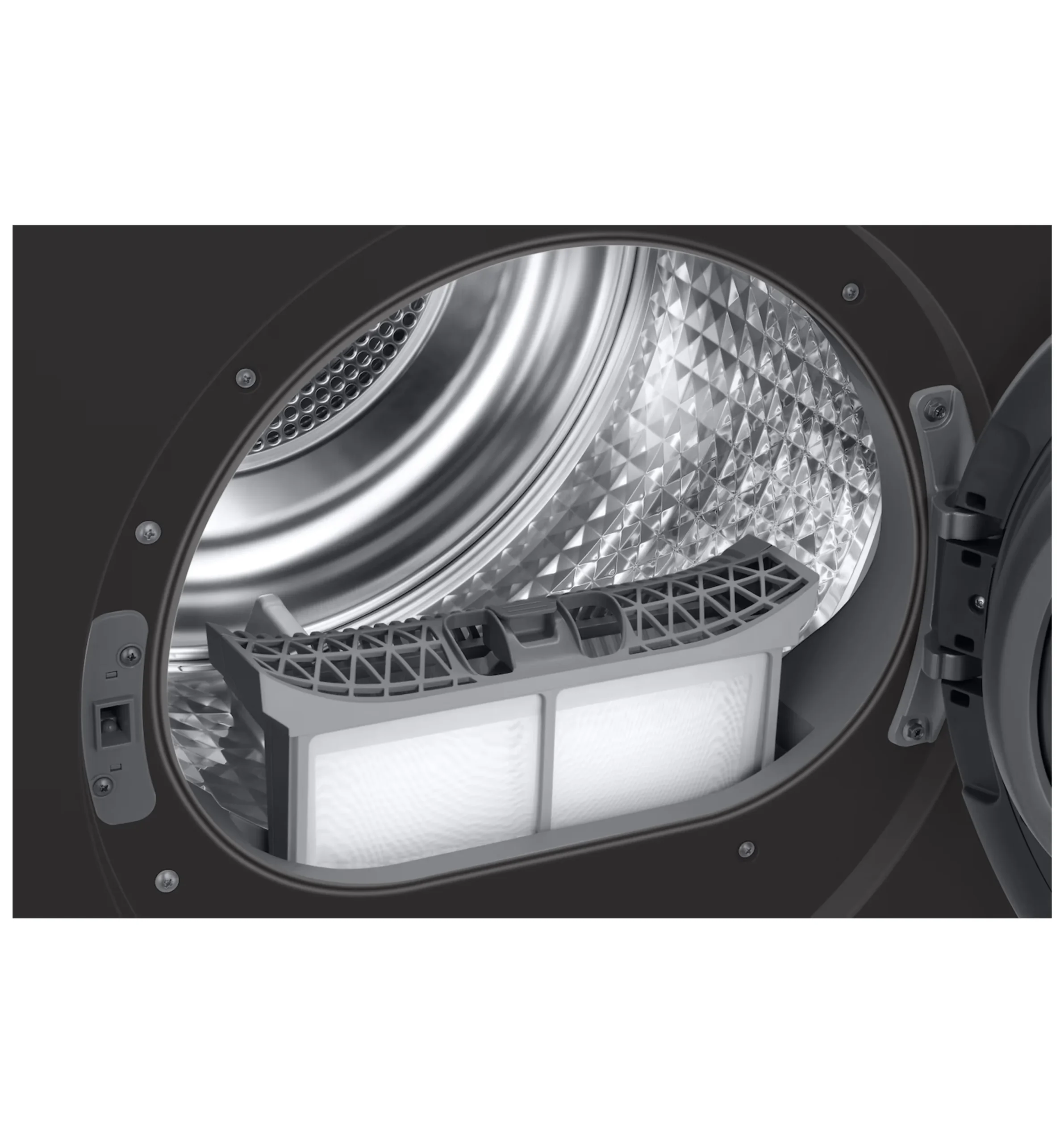Equipped with Heat Pump technology, it dries clothes at lower temperatures to protect fabrics while reducing energy consumption. The OptimalDryâ„¢ system uses smart sensors to monitor moisture and temperature, automatically adjusting drying time for the best results. With 16 drying programs, including Quick Dry, Hygiene Care, and Wool, it offers flexible options for every laundry need.